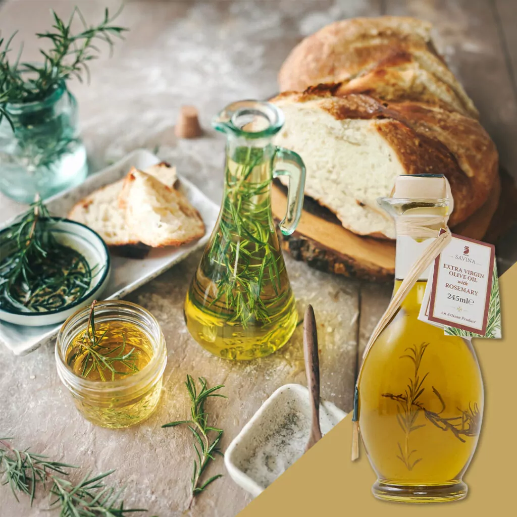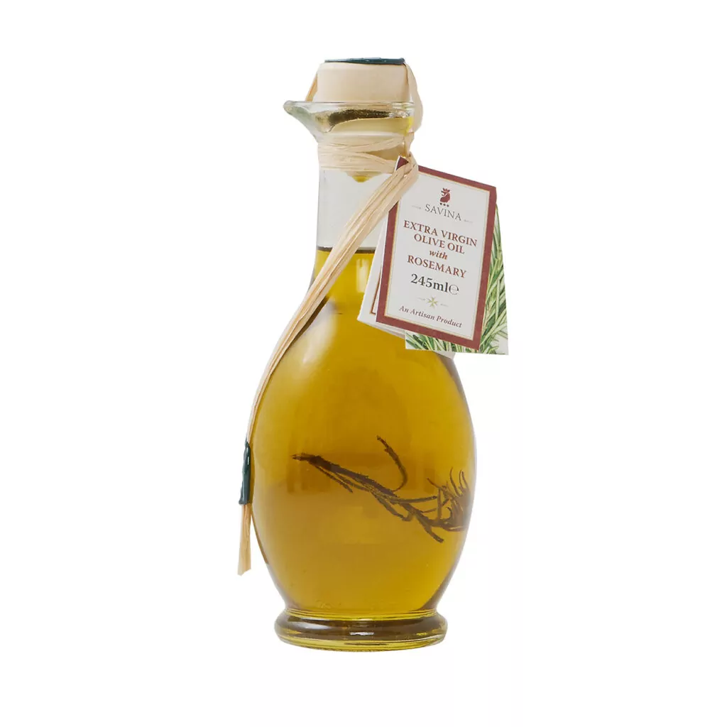 This rosemary-infused extra virgin olive oil delivers a clean, herbaceous aroma with a gently woody finish.