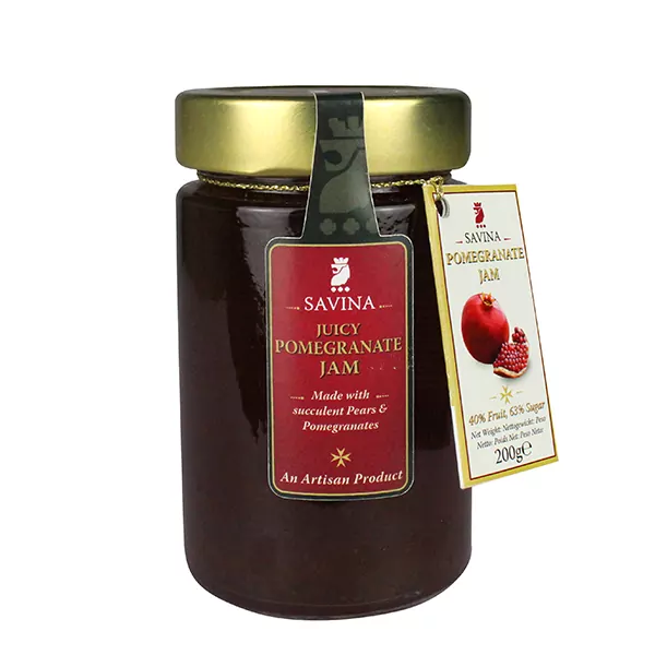Presented in a 200g jar for premium retail and gifting, Savina Pomegranate Jam carries the warmth and intensity of Malta’s island landscape in every spoonful.