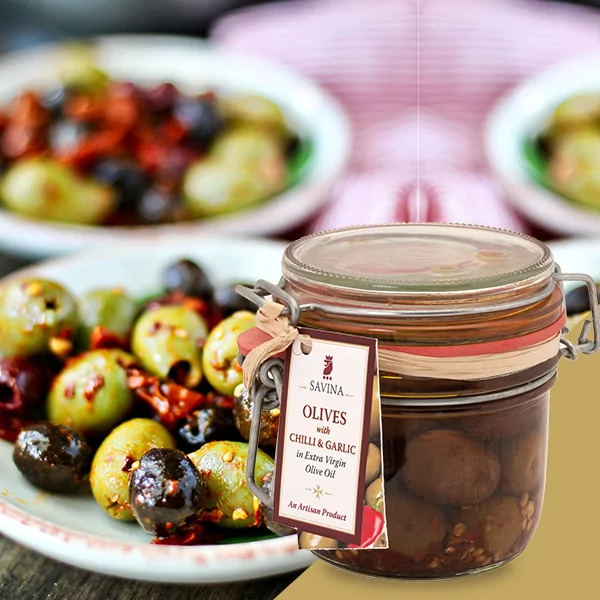 These olives are generously immersed in extra virgin olive oil (39%), allowing the fruit to stay tender and full-bodied. The 2% garlic provides aromatic warmth, while crushed red chilli (1%) delivers a clean, noticeable spice without overwhelming the natural olive flavour.