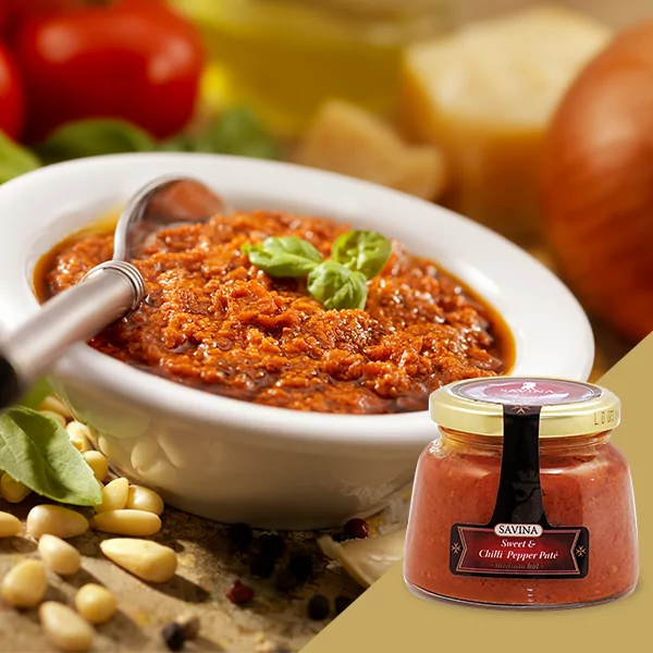 Perfect for spreading over crusty bread, pairing with cheeses, enriching sandwiches, or adding character to antipasti platters, Savina Sweet & Chilli Pepper Pâté delivers bold Mediterranean flavour in a refined, export-ready presentation suited for premium specialty retail.
