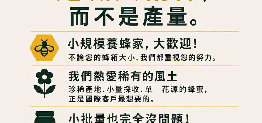 我們不追求大宗商品,而是專注於可追溯、單一來源、具風土特性的蜂蜜與巢蜜產品,滿足台灣高端消費者與專業通路的需求。